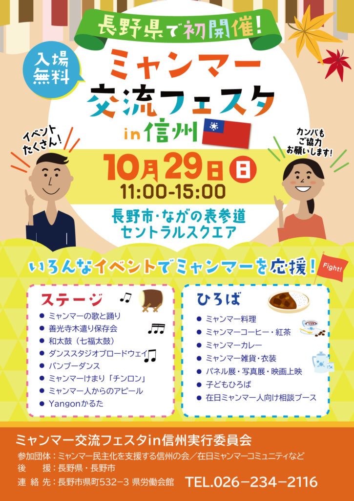 2023年10月29日(日)に長野市 ながの表参道 セントラルスクエアにて、長野県では初開催となる「ミャンマー交流フェスタ in 信州」が開催されました!