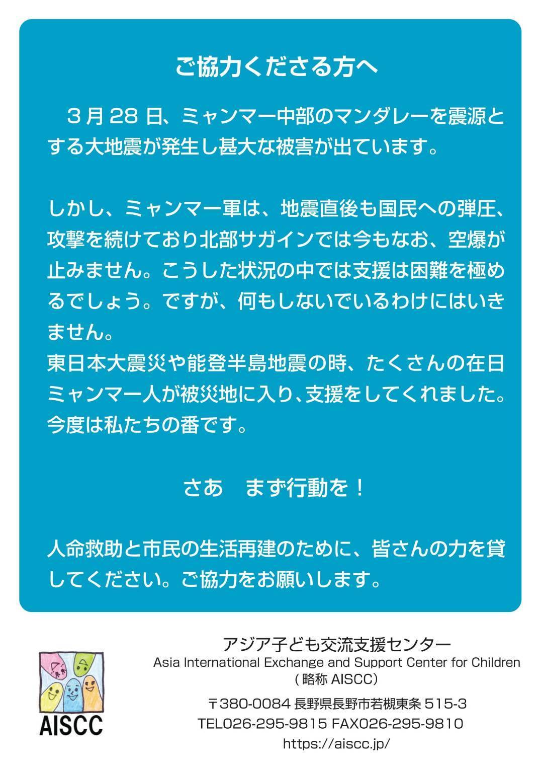 「アジア子ども支援センター」では常に募金活動を行い、ミャンマー国民へ送金しています。
